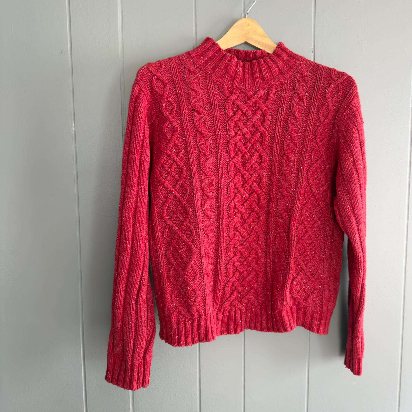 Vintage Red Cable Knit Sweater 90s St John’s Bay Wool Silk Flecked Mock Neck L
