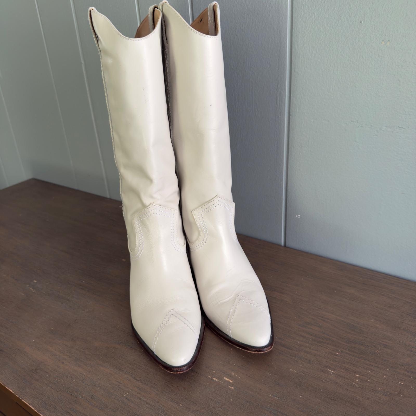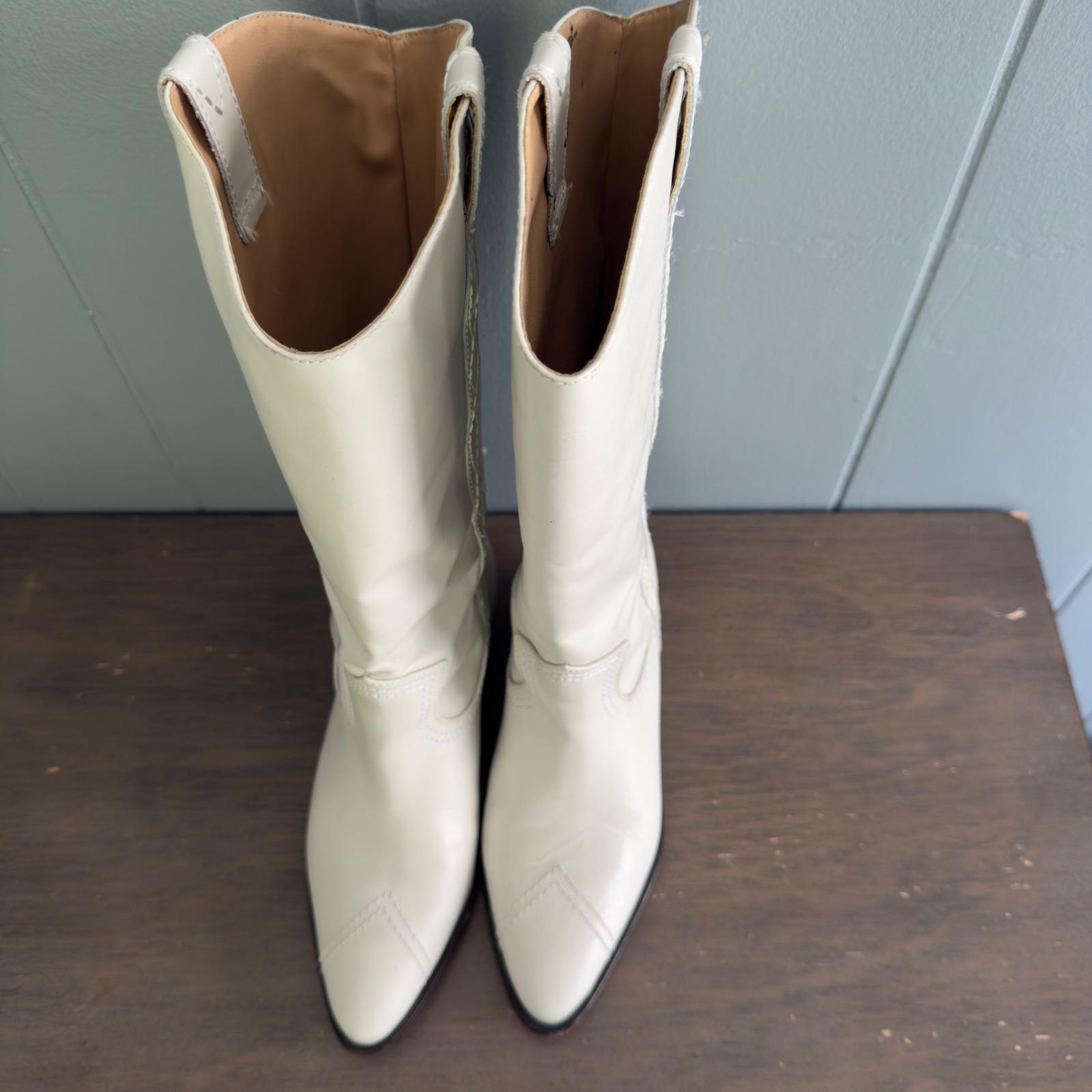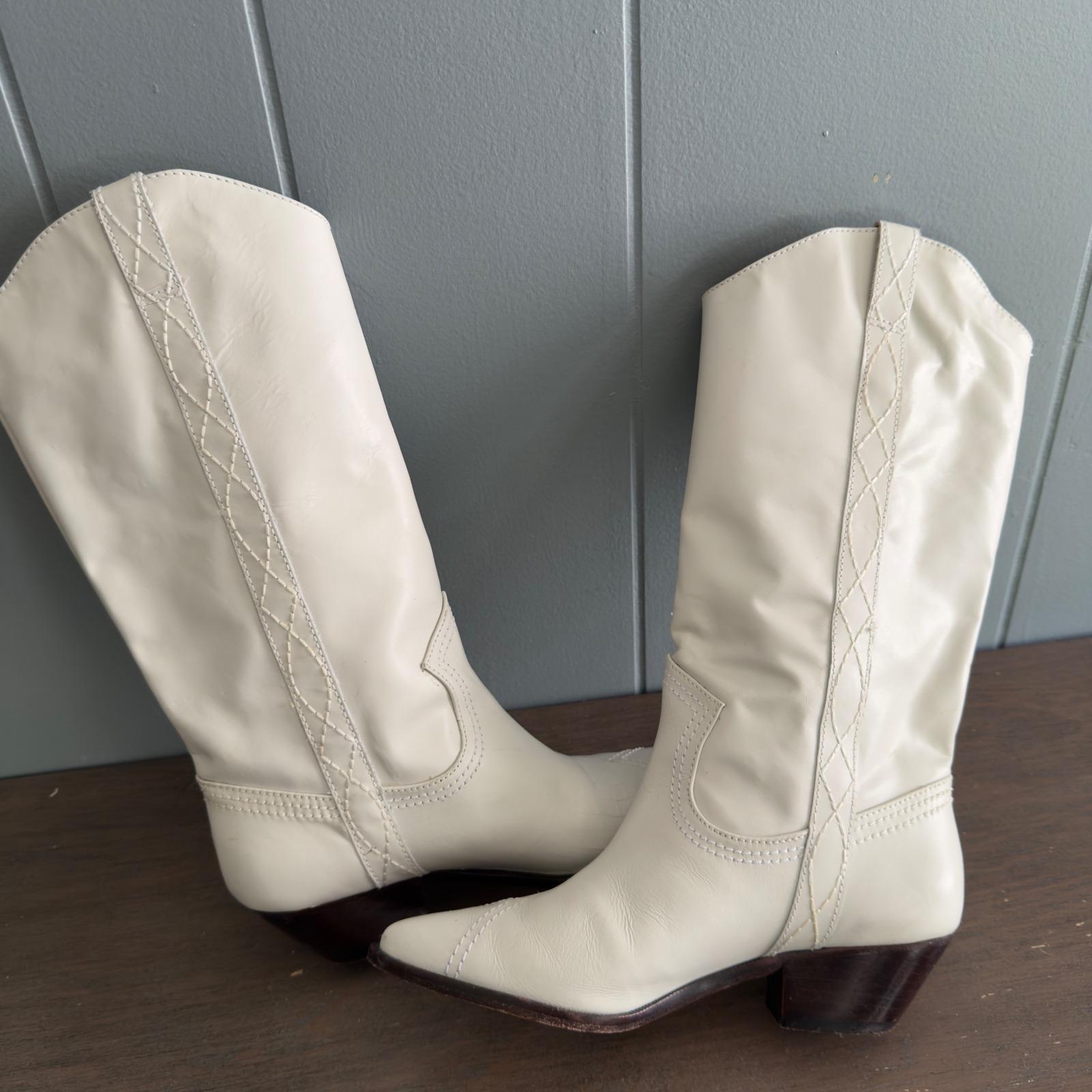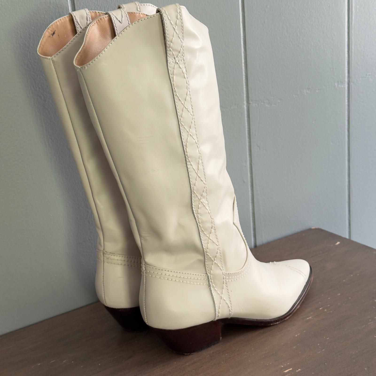 VTG Schutz cowboy boots bone white faux leather western rodeo festival Y2K 6B