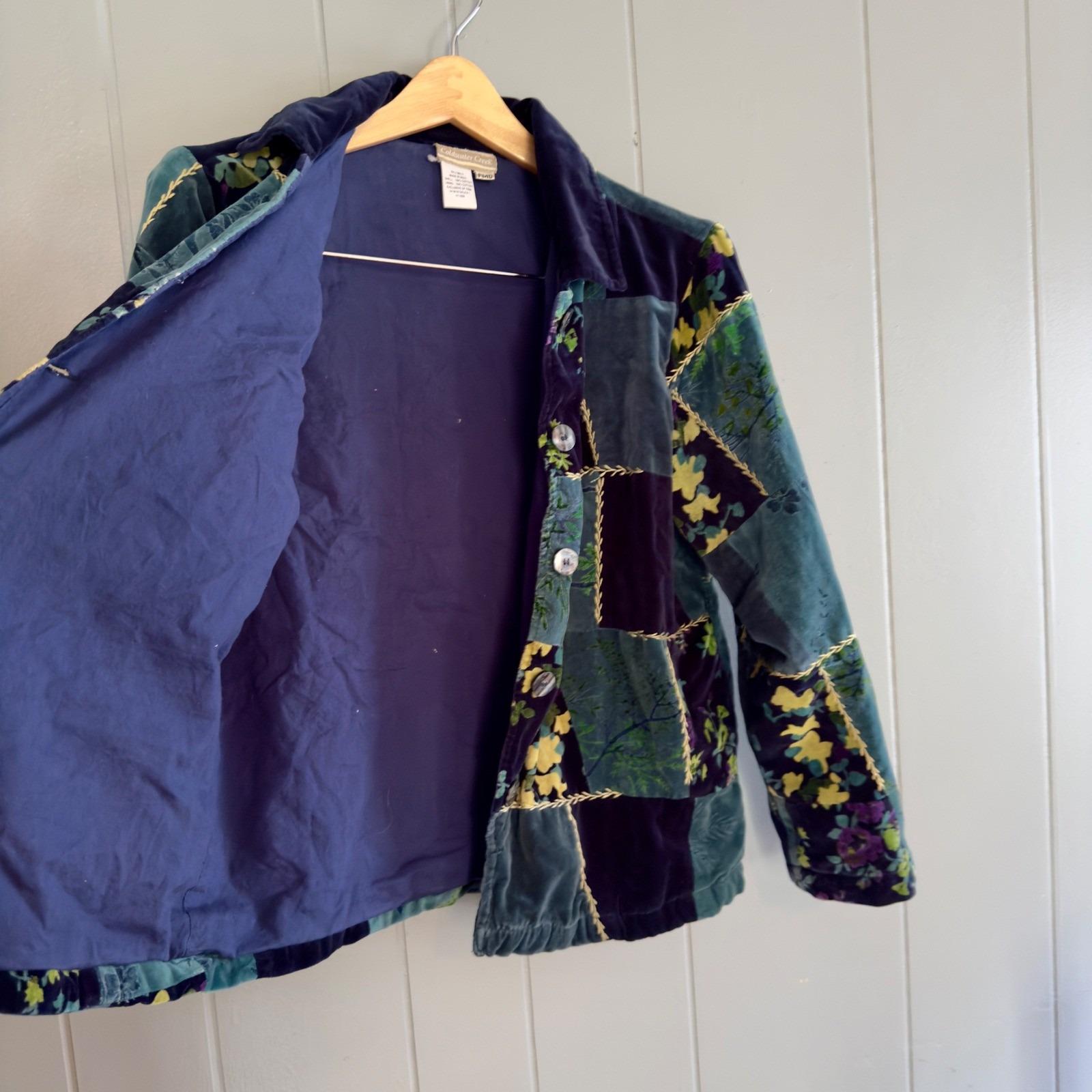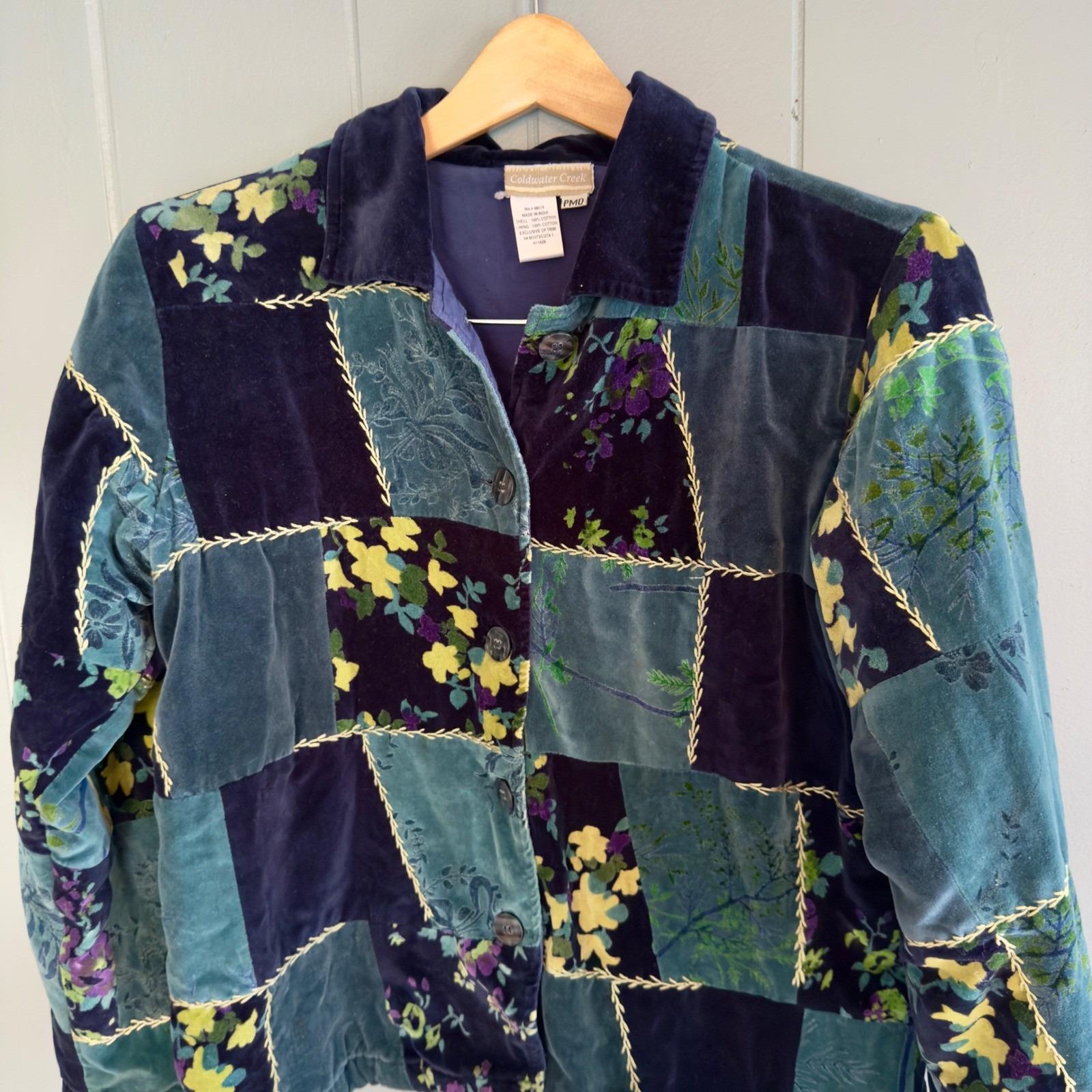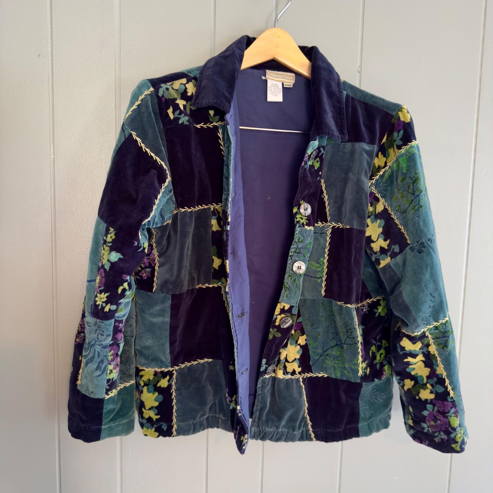 Vtg Velvet Patchwork Jacket Floral Boho Cotton Lined Coldwater Creek Petite Med